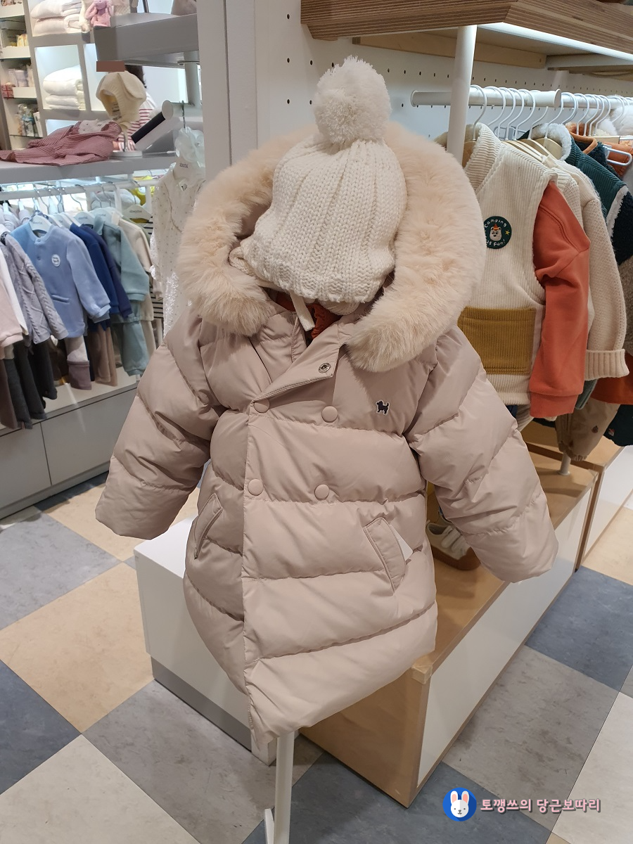 처음 어떤 제품을 사줄까 고민하다가 2가지 제품으로 선택의 폭을 확 줄였습니다. 아기옷 브랜드가 대부분 한정적이고 거기서 거기다 보니 사실 백화점에 입점된 메인 브랜드 몇 개 중에서 추리게 되었습니다. 그중 마음에 들었던 제품이 위의 블루독베이비 다운 패딩 제품과 아래의 밍크뮤 다운 패딩이었습니다. 공주처럼 샤랄라 한 여자아이 다운 옷을 많이 입힌다면 아래 밍크뮤 다운 패딩이 더 잘 어울릴 것 같았는데 저희 아이들은 딸임에도 불구하고 활동량이 많은 개구쟁이 스타일이라 스포티한 룩이 더 잘 어울리는 블루독베이비 제품을 선택하게 되었습니다.